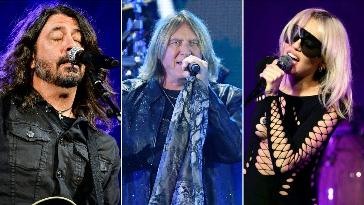 Cyrus joined Def Leppard on stage to belt out a rendition of the band's 1983 hit "Photograph" alongside frontman Joe Elliott and Foos' Dave Grohl, Pat Smear and Chris Shiflett as well as Weezer drummer Pat Wilson. The band also performed "Rock of Ages" with the other rockers on stage during the night.